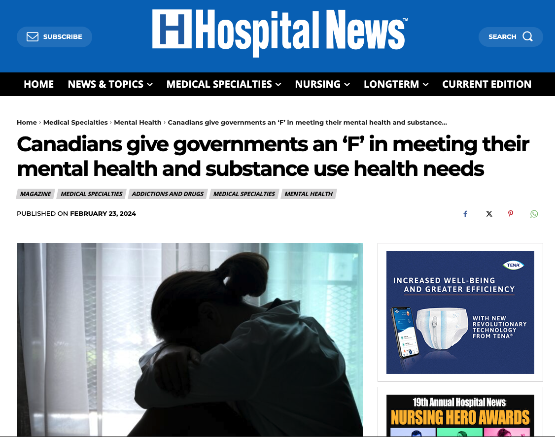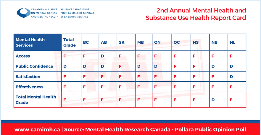 The Canadian Alliance on Mental Illness and Mental Health (CAMIMH) wanted to leverage key findings from its second annual Mental Health and Substance Use Health Report Card, which found that Canadians had once again given governments a failing grade for mental health and substance use services.